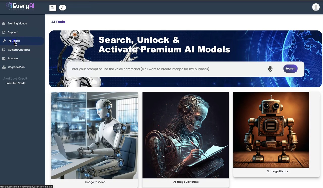 EveryAI positions itself as an all-in-one AI aggregator. Instead of paying for individual tools (e.g., $20/month for ChatGPT + $60/month for MidJourney), users access all models through one dashboard for a flat fee. Key selling points: